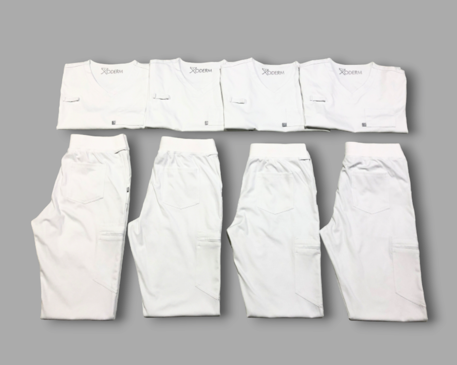 The exoderm scrubs have the ability to hold the stethescope in place also has hip strap to hold medical pagers